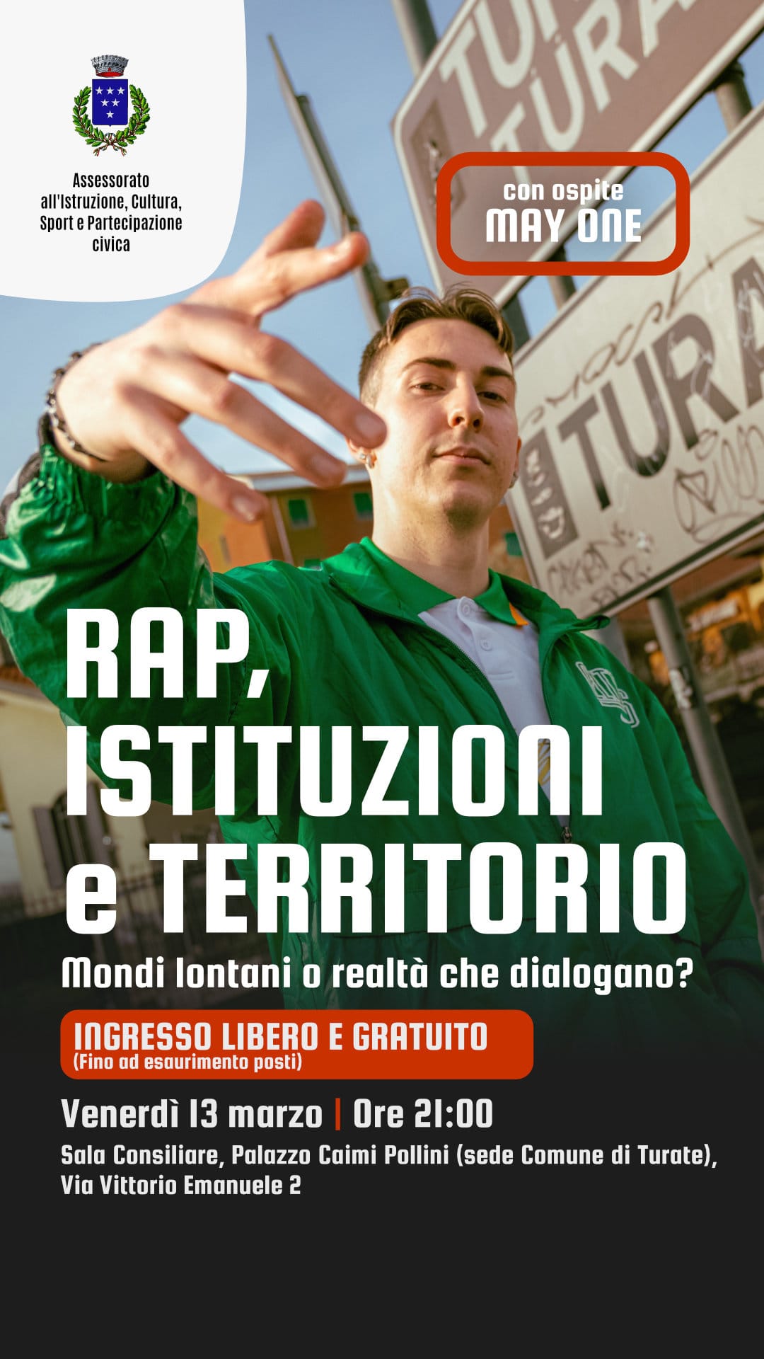 Il Comune di Turate - Assessorato all’Istruzione, Cultura, Sport e Partecipazione civica, propone una serata di confronto tra mondo rap e istituzioni.