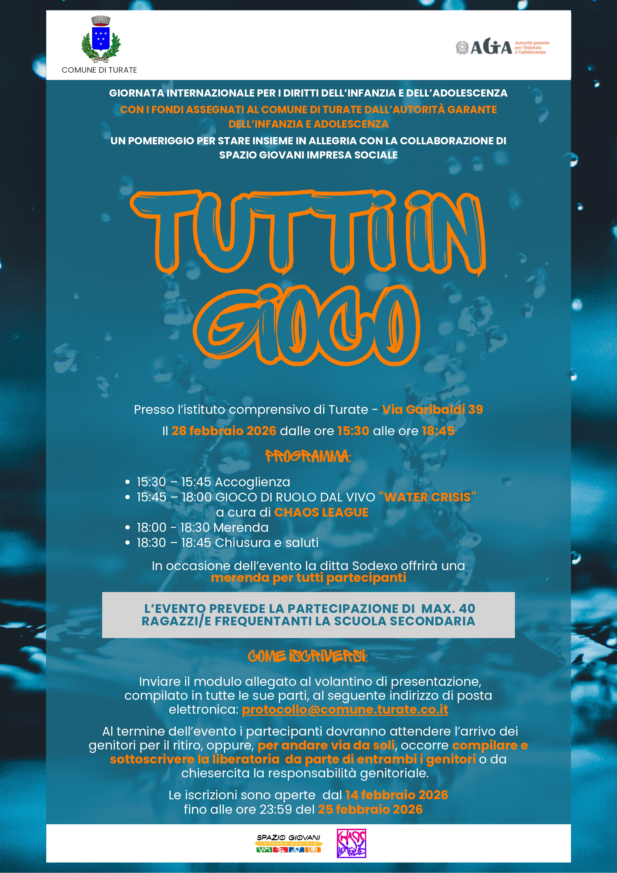 Scarica il modulo di iscrizione, compilalo e invialo a: protocollo@comune.turate.co.it